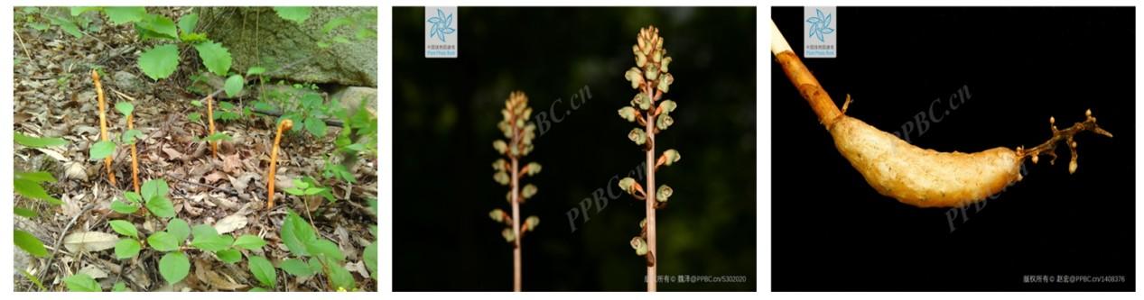 1.天麻全株2.天麻花序3.天麻塊狀根