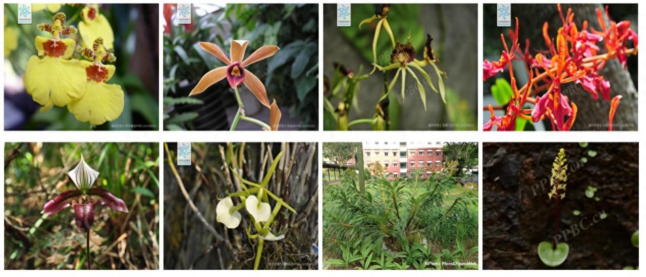 4.溼地生境中竹葉蘭5.荒漠邊緣地區的百歲蘭6.人工栽培的蝴蝶蘭