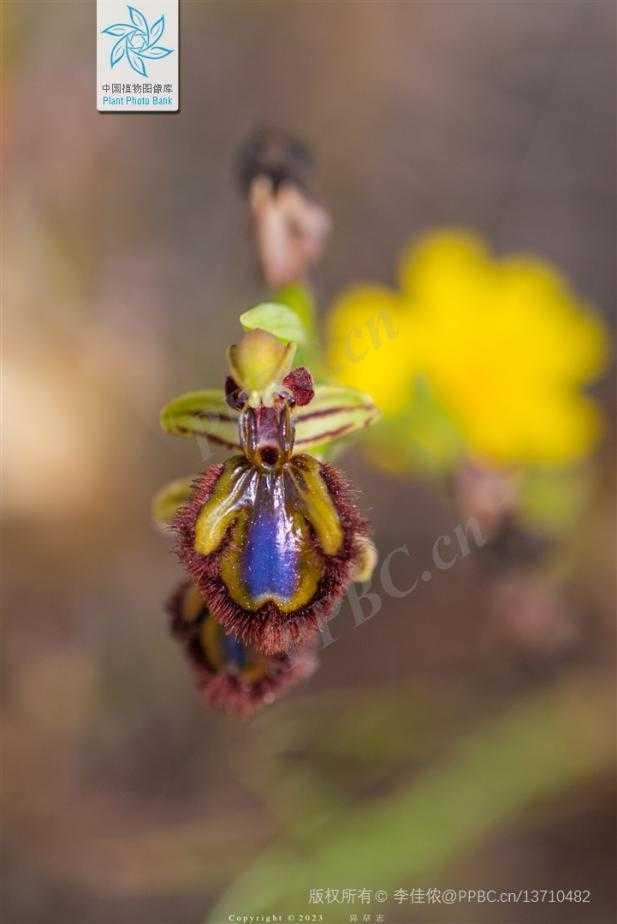 土蜂蘭(Ophrys speculum)脣瓣呈現金屬光澤的藍色斑塊,模擬雌性胡蜂腹部,同時還釋放出與雌性昆蟲相似的性激素信號,就像“藍牙信號一樣”,等待發情的雄性胡蜂前來配對傳粉。