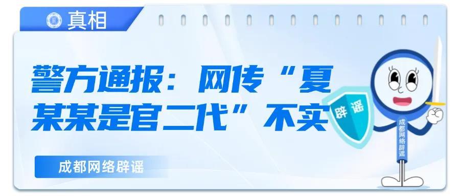 針對網傳“夏某某是官二代”信息,經覈查,夏某某父親系巴中市某事業單位普通專業技術人員,母親爲個體商戶。相關言論系捏造事實,公安機關將依法追究相關人員法律責任。