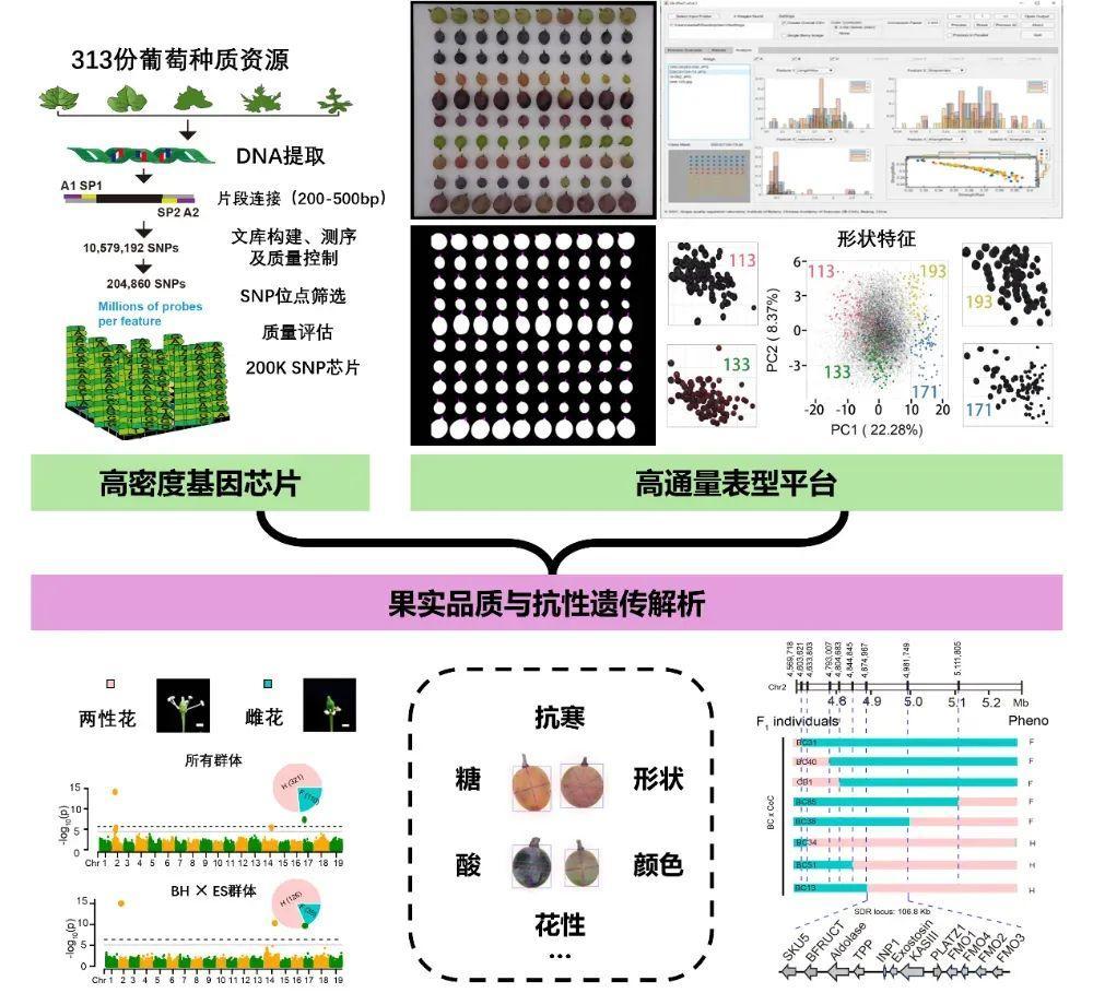 整合高密度芯片與高通量表型實現對葡萄關鍵農藝性狀的遺傳結構精準解析 圖片來源:作者製作