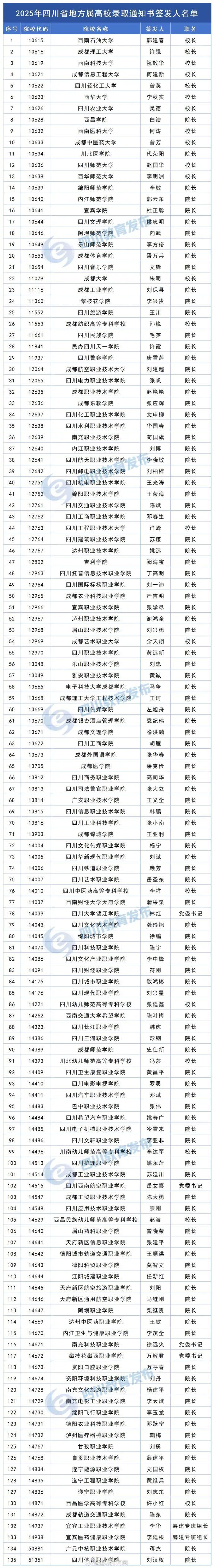 詳情:按照《教育部關於做好2025年普通高校招生工作的通知》(教學〔2025〕1號)要求,我省今年繼續實行校長簽發錄取通知書制度,普通高校錄取通知書除加蓋高校校章外,還應由校(院)長或授權簽發人簽發,並對錄取結果負責。現將我省具有普通高等教育招生資格的地方屬高等學校錄取通知書簽發人名單彙總公佈如下(共135所)。