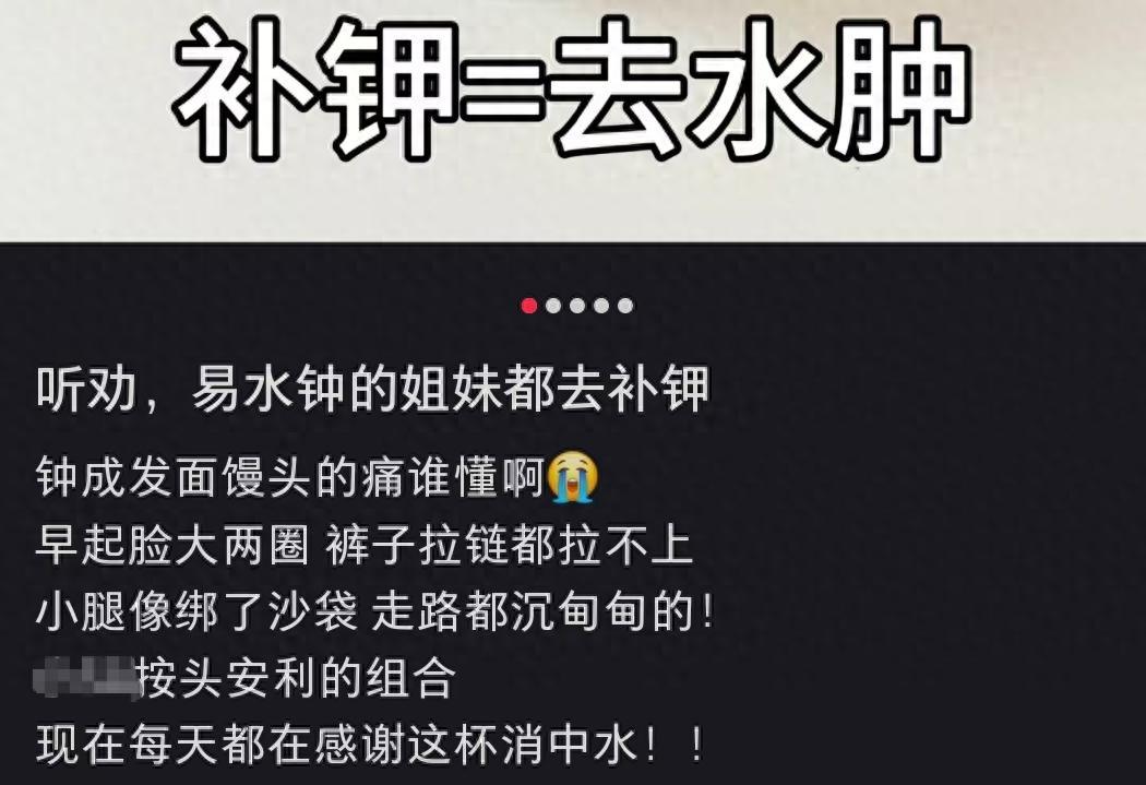 最近網絡上出現了一種說法:補鉀可以去水腫。