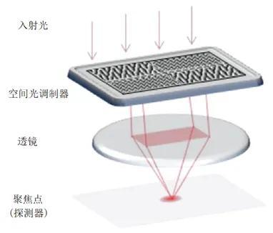 下圖中這樣先對不同位置光反射率或透射率進行調節,並行實現各個對應位置數值的乘法,再把這些乘積用透鏡求和的光學裝置,就是一個簡單的“光學乘加計算器”。