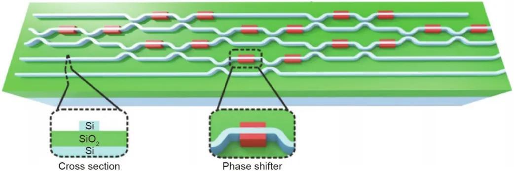 正常情況下光會在一根波導中“安分守己”地從一端傳到另一端,但是當兩條波導靠得很近的時候,就會“紅杏出牆”“節外生枝”,兩根波導中的光信號互相一部分跑到對方里面,設計者有意地讓兩條波導多次發生這種相互干擾,構造了很多個稱爲馬赫·曾德爾干涉儀的基本單元,並且連接到一起組成一個網絡。