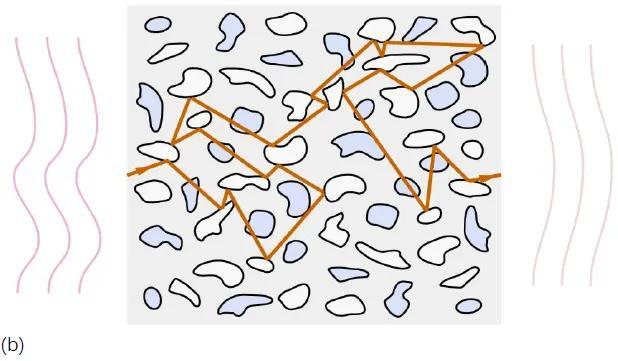 圖7:(a)智能玻璃散射介質的光計算裝置[6];(b)光在障礙物組成的“迷魂陣”中“左碰右撞”突出重圍[6]
