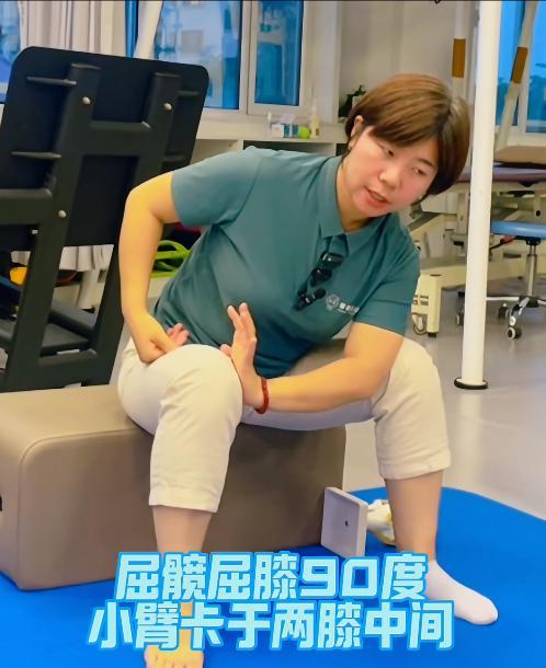 ▶ 坐姿屈髖屈膝 90°,雙膝與髖同寬。一手小臂卡與雙膝之間固定膝關節