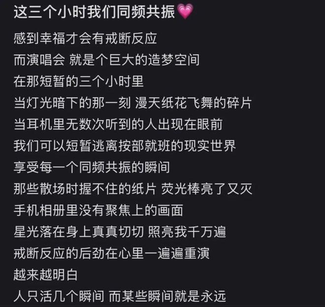很多人在看完演唱會後,都會發出一種感嘆:“人生不就是活這麼幾個瞬間嘛!”