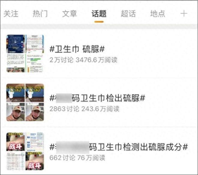 衛生巾含硫脲事件引發熱議(圖片來源:微博截圖)
