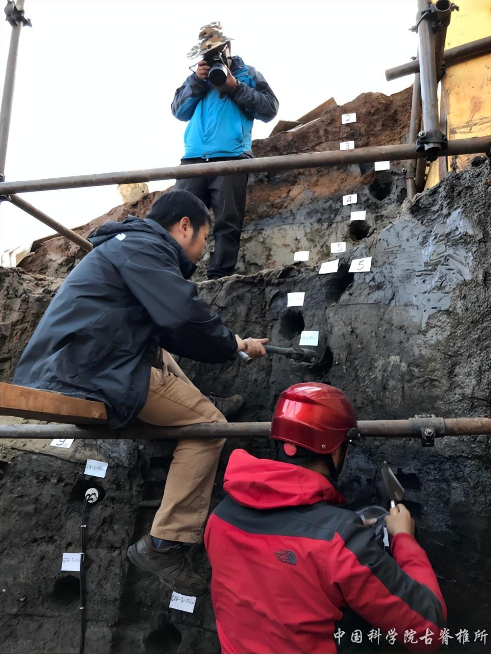 研究人員在現場取測年樣品(圖片來源:中國科學院古脊椎動物與古人類研究所)