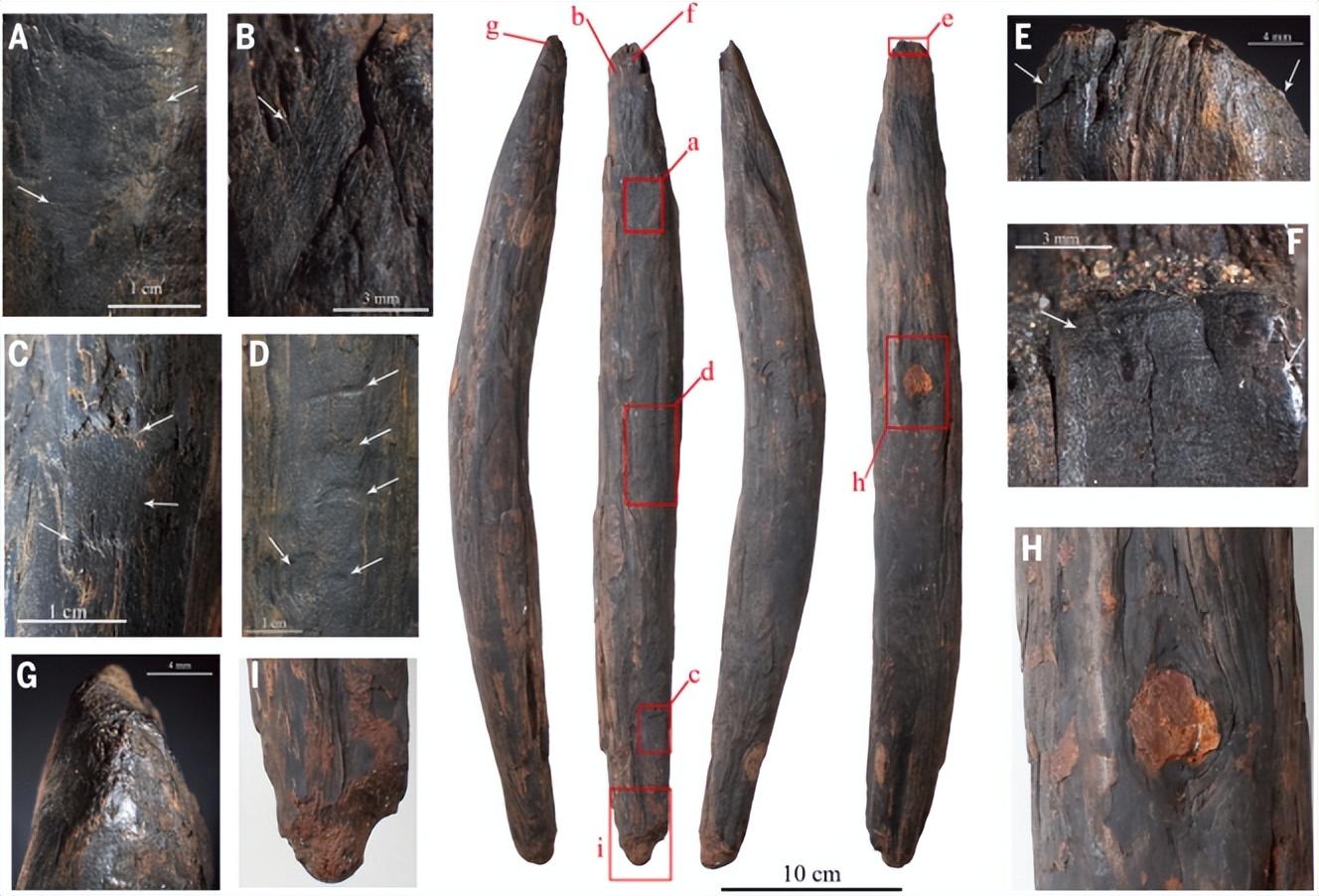 在 35 件標本中,半數以上保留了磨損與加工痕跡,甚至部分工具尖端附着土壤殘留物和植物澱粉粒——這成爲它們用於挖掘地下食材的直接證據。模擬實驗表明,這些痕跡需要長期使用和刻意加工才能形成。由此可知,這些木器絕非臨時撿拾的樹枝,而是古人類精心製作、長期使用的“專業工具”。