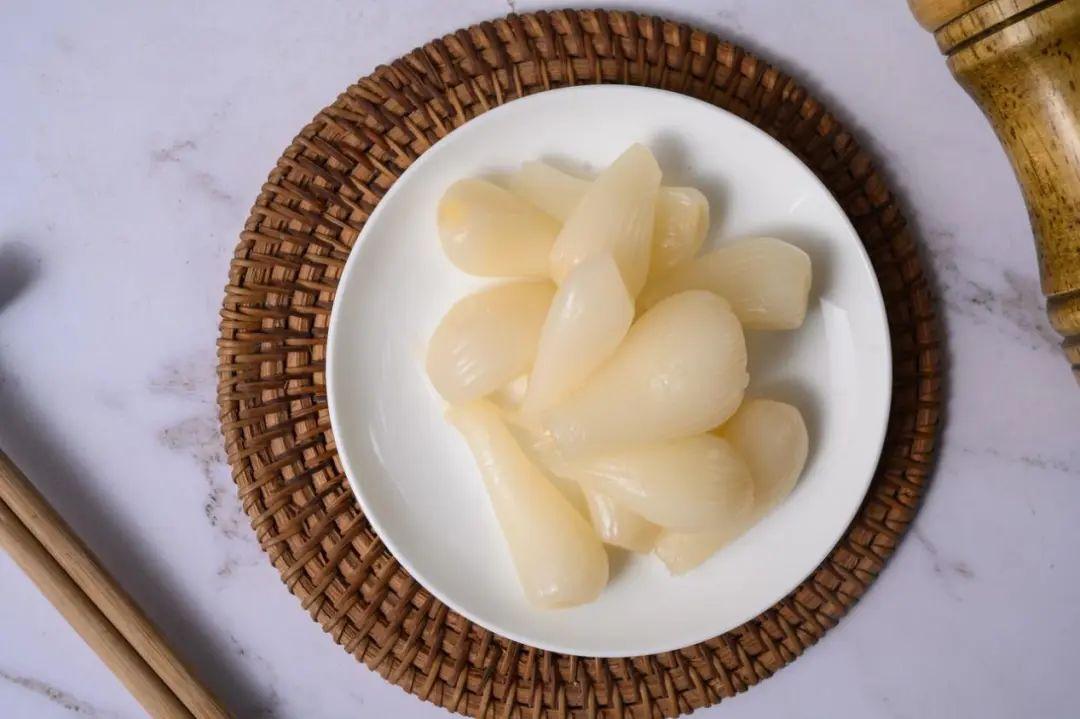 藠頭風味獨特,對於生活在南方的朋友來說,一碗米飯搭配一盤藠頭就算得上是美美的一餐了。日常食用藠頭既能直接切絲、切片後用來炒菜,也能用鹽醃製成泡菜,味道極佳。