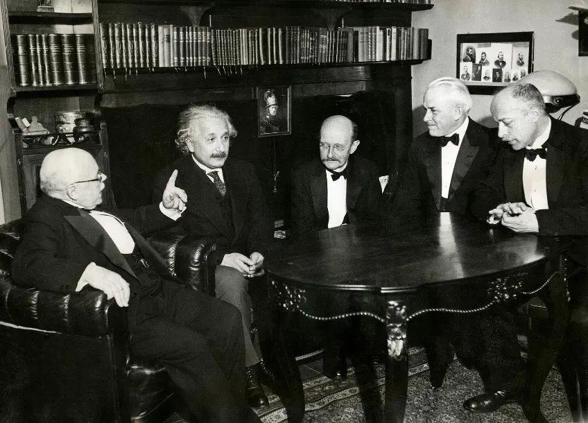 圖(5) 1931年11月11日,普朗克在柏林馮·勞厄舉行的晚宴上(從左數第三位)(圖片來源:Wikipedia)