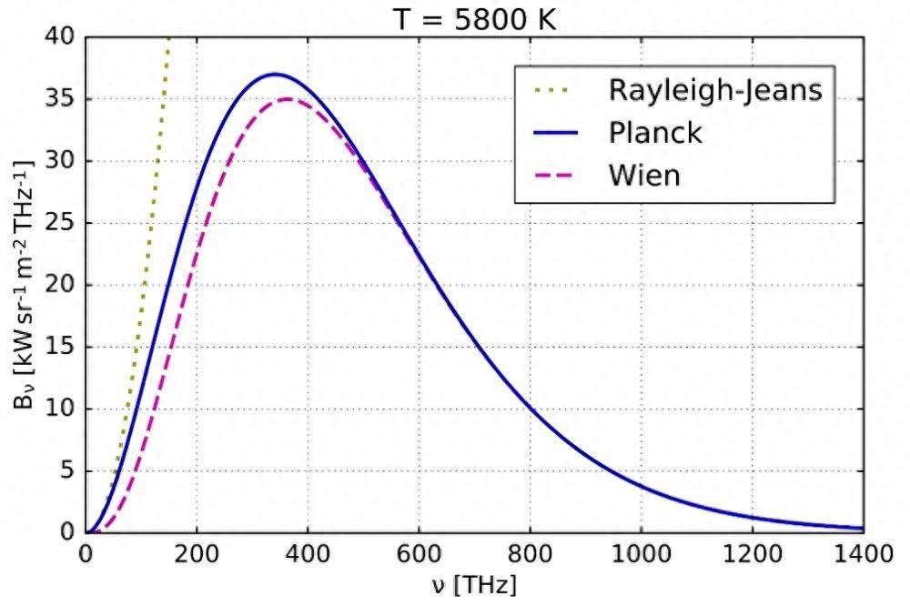 在當時的研究背景下,普朗克面臨的情況是:適用於短波的維恩公式和適用於長波的瑞利-金斯公式,各有優缺點。
