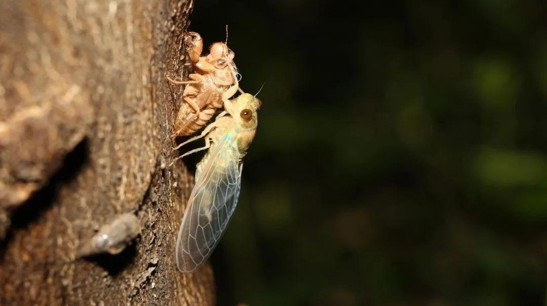 發育成熟後,大量蟬若蟲在夏季相對短暫的時間內同時破土而出,攀爬到植物上,完成一生中的最後一次蛻皮,羽化成成蟲。這種“批量出世”的方式,可以提高個體的生存幾率,從而增加繁殖成功率,畢竟捕食者再多,也不能把全部種羣都喫光。美國康奈爾大學的一項研究還顯示,蟬的“爆發年”總會出現在以蟬爲食的鳥類數量減少的年份,這樣能儘量減少天敵對其生存的影響。