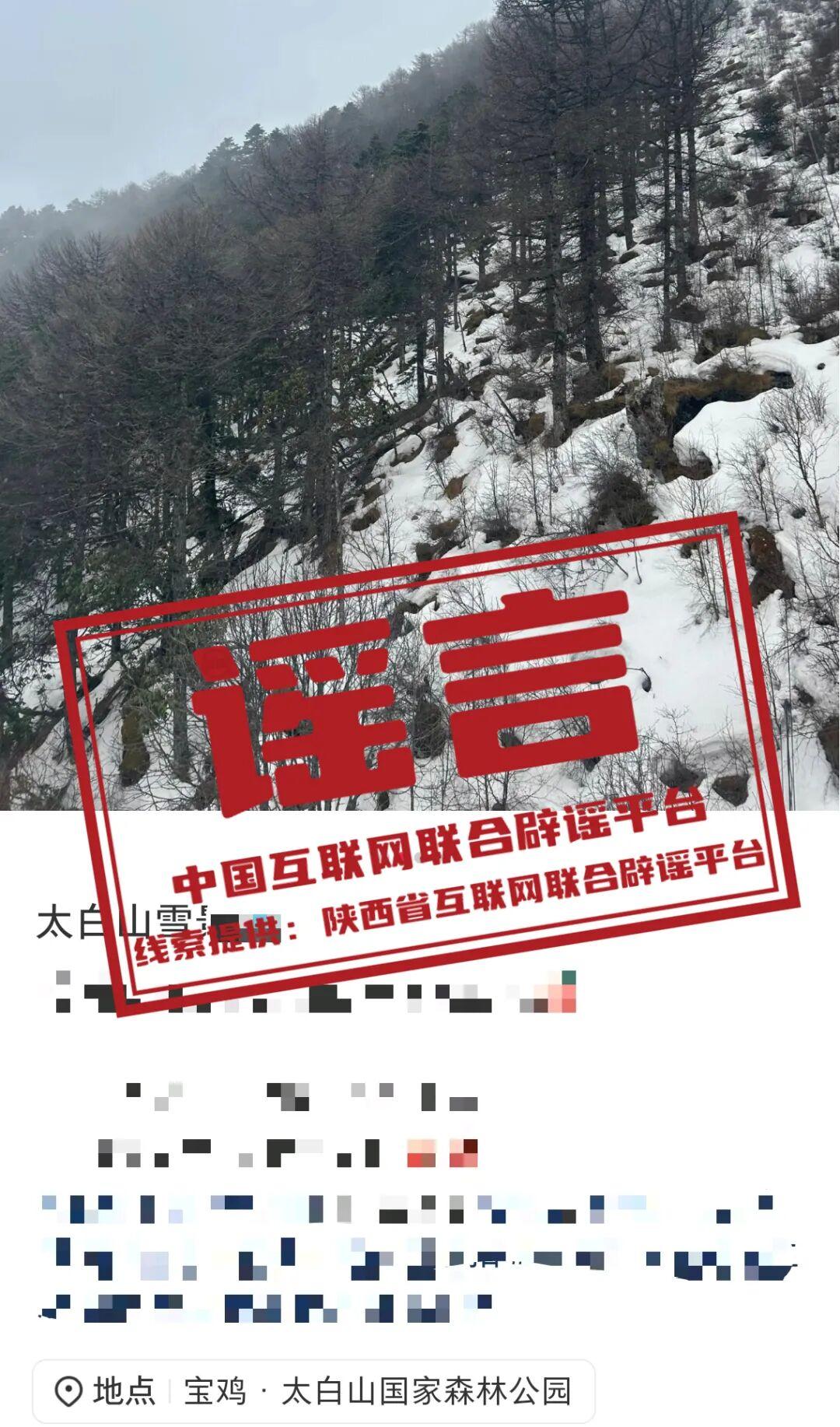 真相:近日,有網民發帖稱“陝西太白山迎來今秋第一場大雪”,並曬出視頻畫面,山林間白雪紛飛,屋檐上覆蓋着薄雪。相關視頻引發關注,有網民表示立即前往景區賞雪。對此,景區工作人員回應稱,網傳視頻爲往年下雪場景,目前太白山正在下大雨,景區已經關閉。提醒遊客出行前應關注景區的實時公告與天氣情況,以免受虛假信息誤導。(來源:陝西省互聯網聯合闢謠平臺、@上游新聞)
