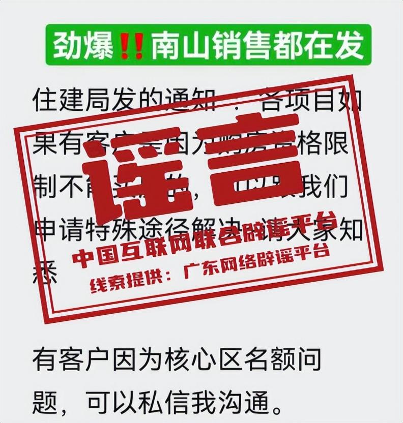詳情:近日,關於“深圳核心區放開限購”內容的微信聊天截圖在網上流傳,有關“各項目如果有客戶是因爲購房資格限制不能買房的,可以申請特殊渠道解決”的說法,引發關注。經覈實,深圳市今年9月5日出臺了房地產調控政策,明確符合深圳市商品住房購買條件的居民家庭(包括深圳市戶籍居民家庭、自購房之日前在深圳市連續繳納社會保險或個人所得稅滿1年及以上的非深圳市戶籍居民家庭),在羅湖區、寶安區(不含新安街道)、龍崗區、龍華區、坪山區、光明區範圍內購買商品住房不限套數。但該調控政策對福田區、南山區和寶安區新安街道等核心區與其他區域實施差異化調控,並不存在網傳的“深圳核心區放開限購”的情況。請廣大市民切勿輕信非官方渠道的虛假消息。