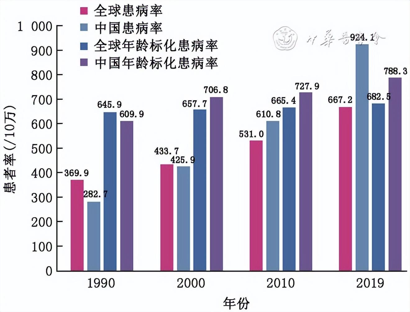 2024年5月發佈的《中國阿爾茨海默病藍皮書(精簡版)》顯示,根據全球疾病負擔研究(GBD)數據,2019年全球 AD 及相關癡呆的患病人數達到5162萬,總體患病率爲667.2/10萬;同年,我國 AD 及相關癡呆總人數爲1314 萬,大約佔全球 AD 患者總人數的25.5%,我國 AD 及相關癡呆總體患病率爲924.1/10 萬。