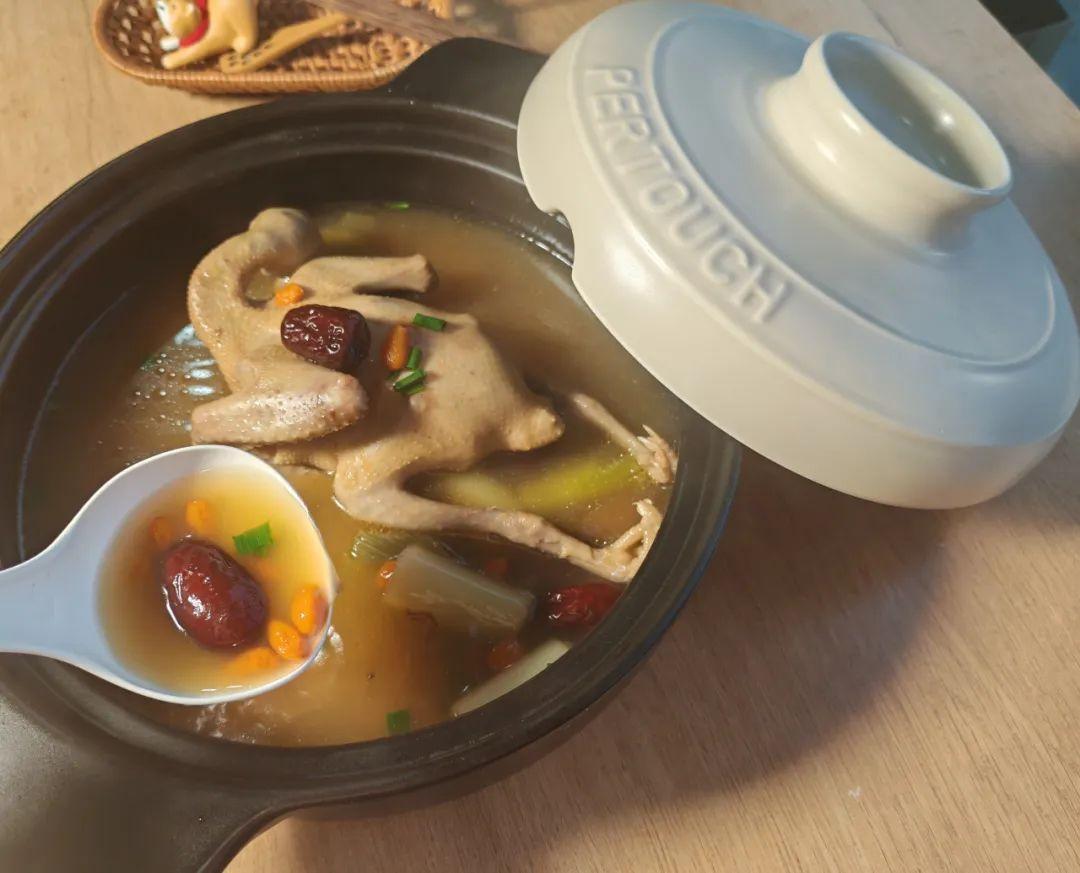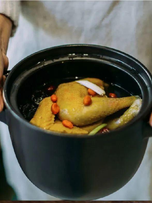 金黃雞湯在粗陶裏咕嘟作響,