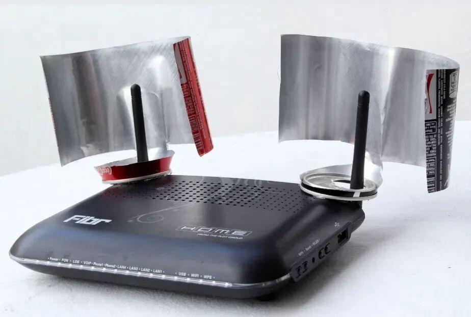 另外,之前網上流傳過一種方法,說是隻要把易拉罐(或者鋁箔紙)套在天線後面,把天線的信號朝着你所在的方向反射,能夠增強信號。