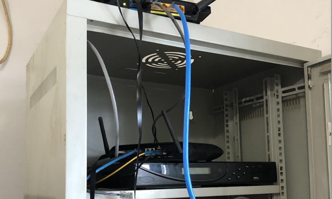 被關掉鐵櫃子裏的路由器,圖庫版權圖片,轉載使用可能引發版權糾紛
