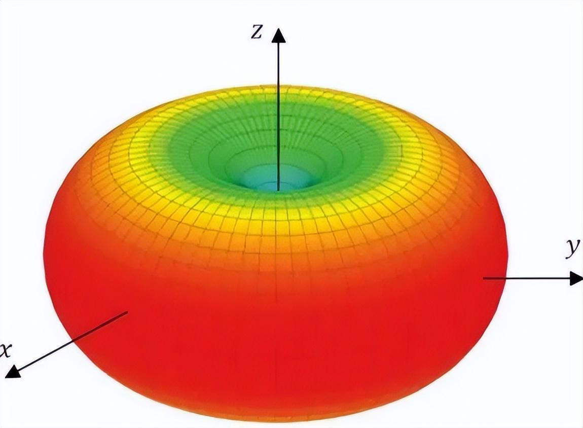 路由器的天線在向外發射信號的時候,並不是從尖端向外發射的,而是以天線爲中心(即天線作爲下圖中的 Z 軸)呈現甜甜圈狀向外擴散的。