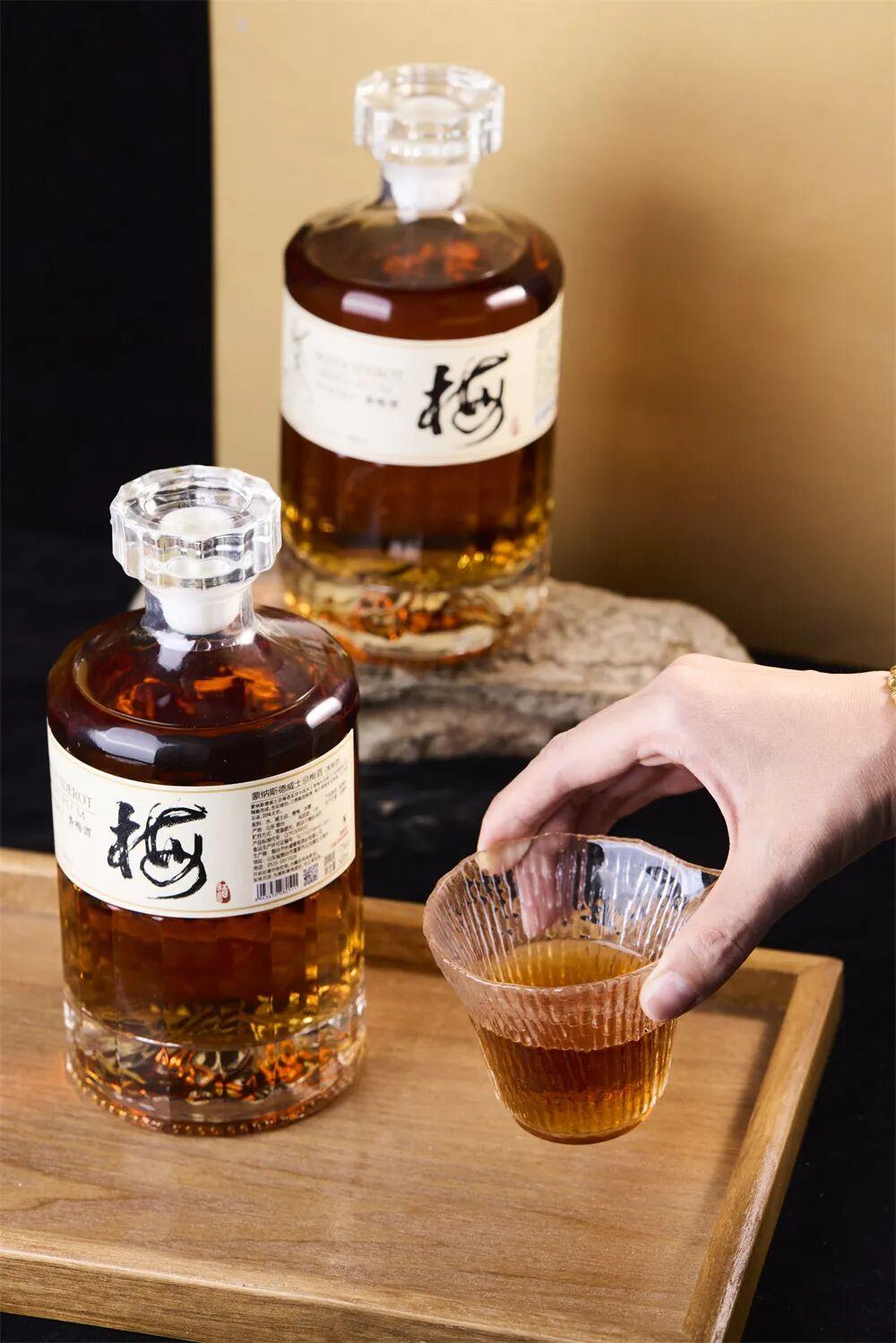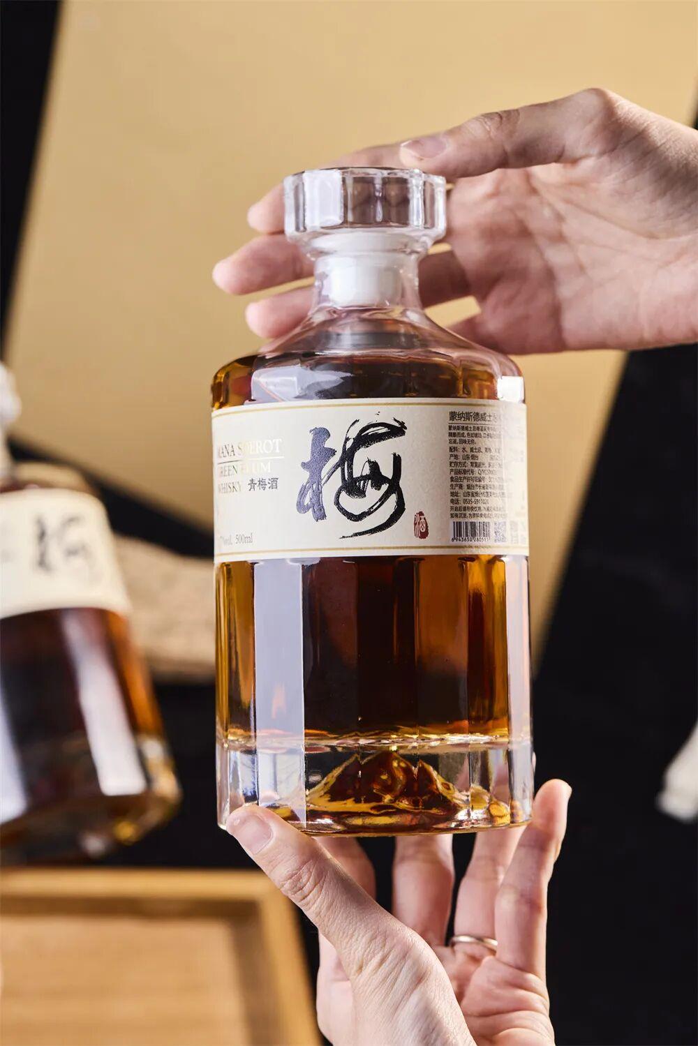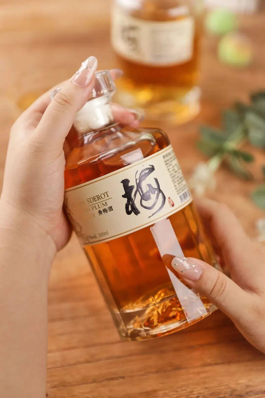 威士忌風格的水晶酒瓶清透好看,很有檔次很顯貴,一下子就甩開了市面上一些青梅酒。