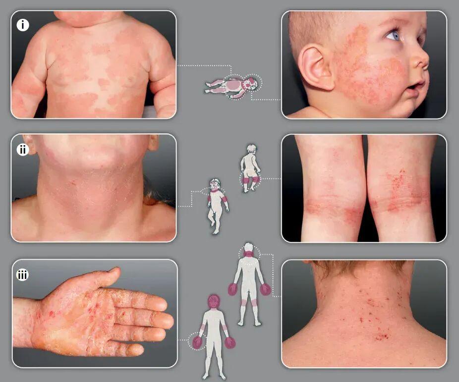另外,特應性皮炎的表現和年齡也高度相關。下表總結了它的年齡分佈特點。