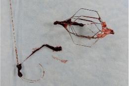 通過把雞血抽進皮條內,“蚯蚓”狀的長條血凝塊出現了: