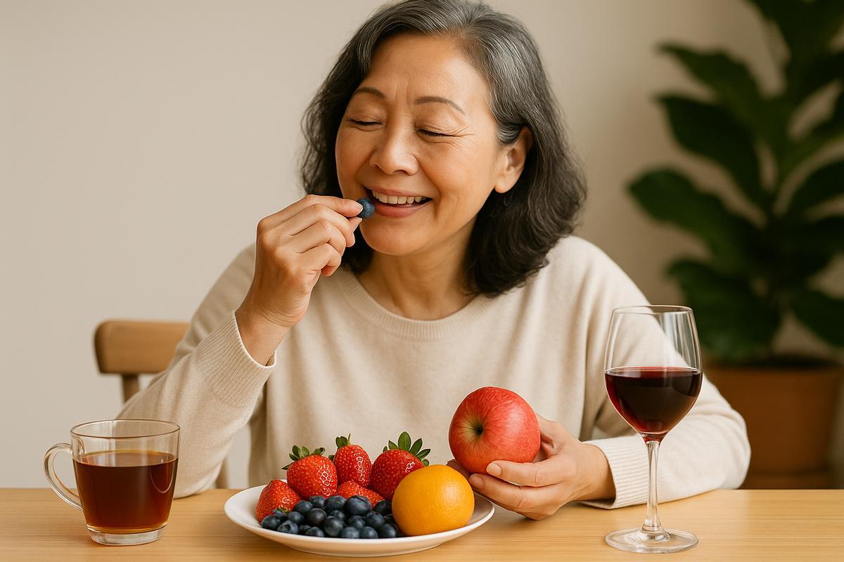 飲食中獲得黃酮類帶來的抗衰老益處(圖片來源:作者使用AI生成)