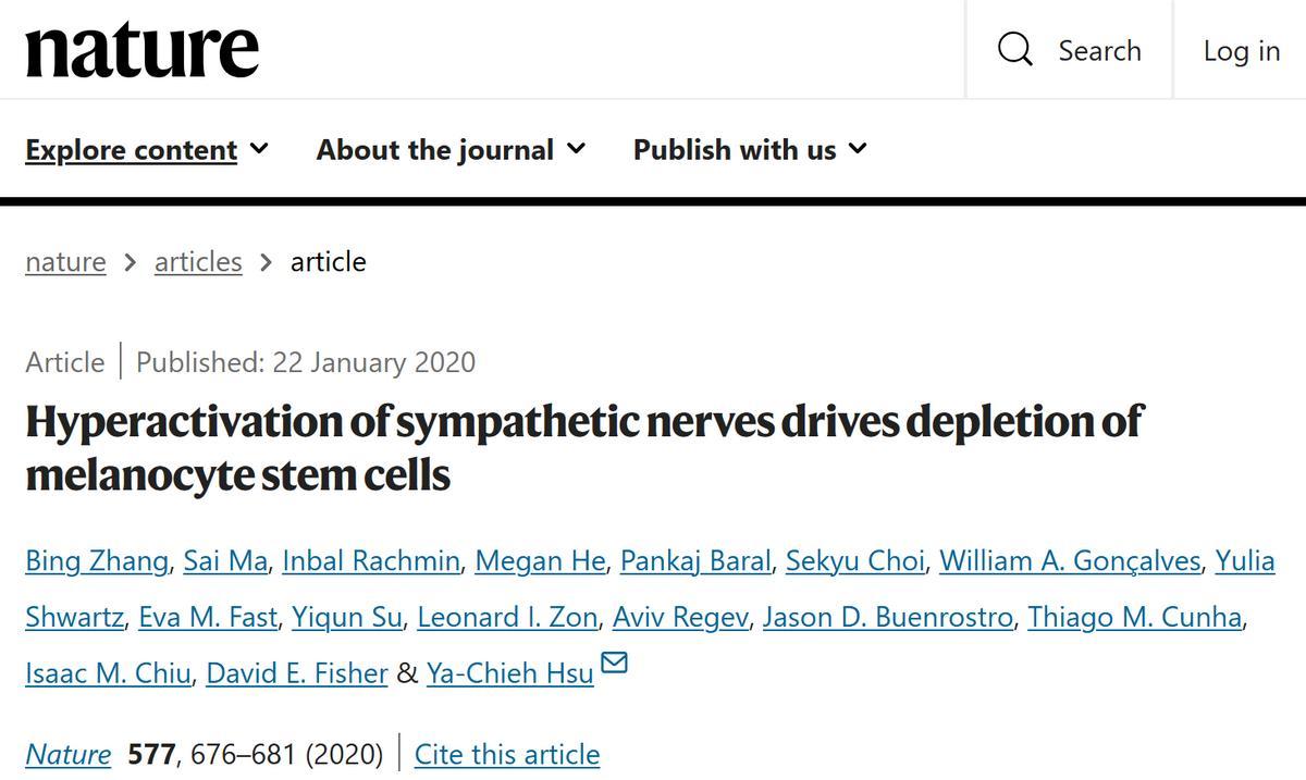 [3] Zhang, Bing, et al. "Hyperactivation of sympathetic nerves drives depletion of melanocyte stem cells." Nature 577.7792 (2020): 676-681.