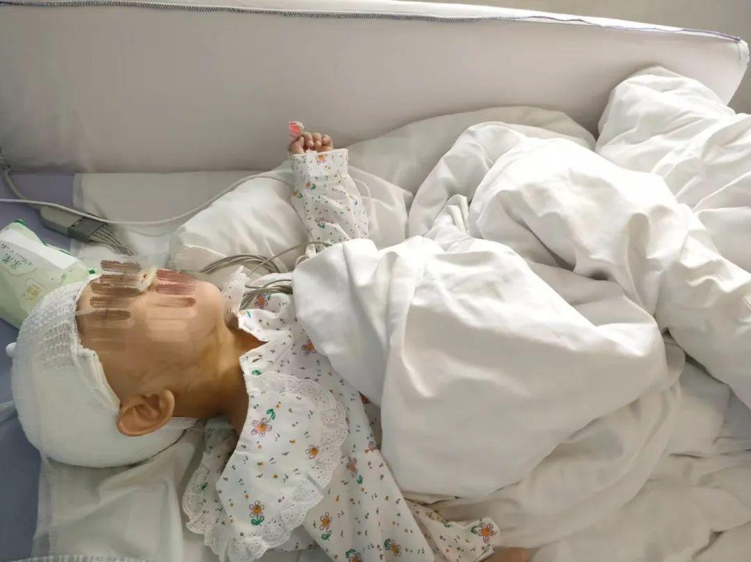 手術後全身插滿管子、頭上包紮得嚴嚴實實的小檸檬丨作者供圖