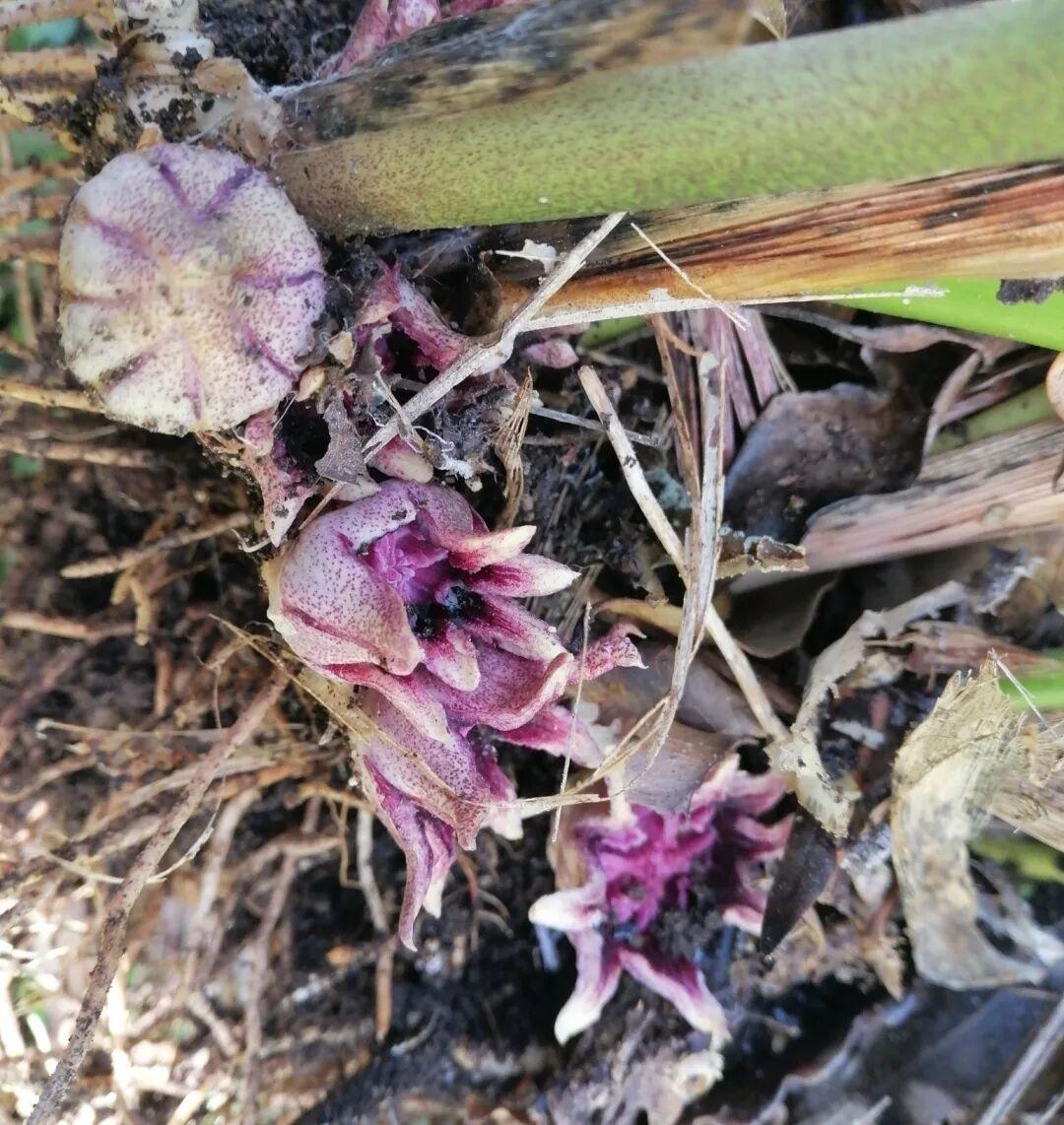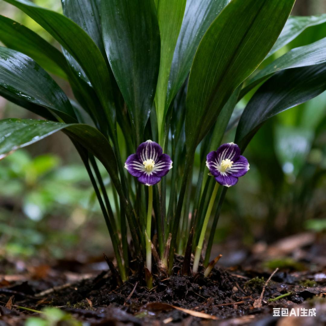 長出了長花葶的蜘蛛抱蛋(Aspidistra elatior)或許因爲花朵像蜘蛛抱着白色的蛋而得名。花朵應該開在地面上。