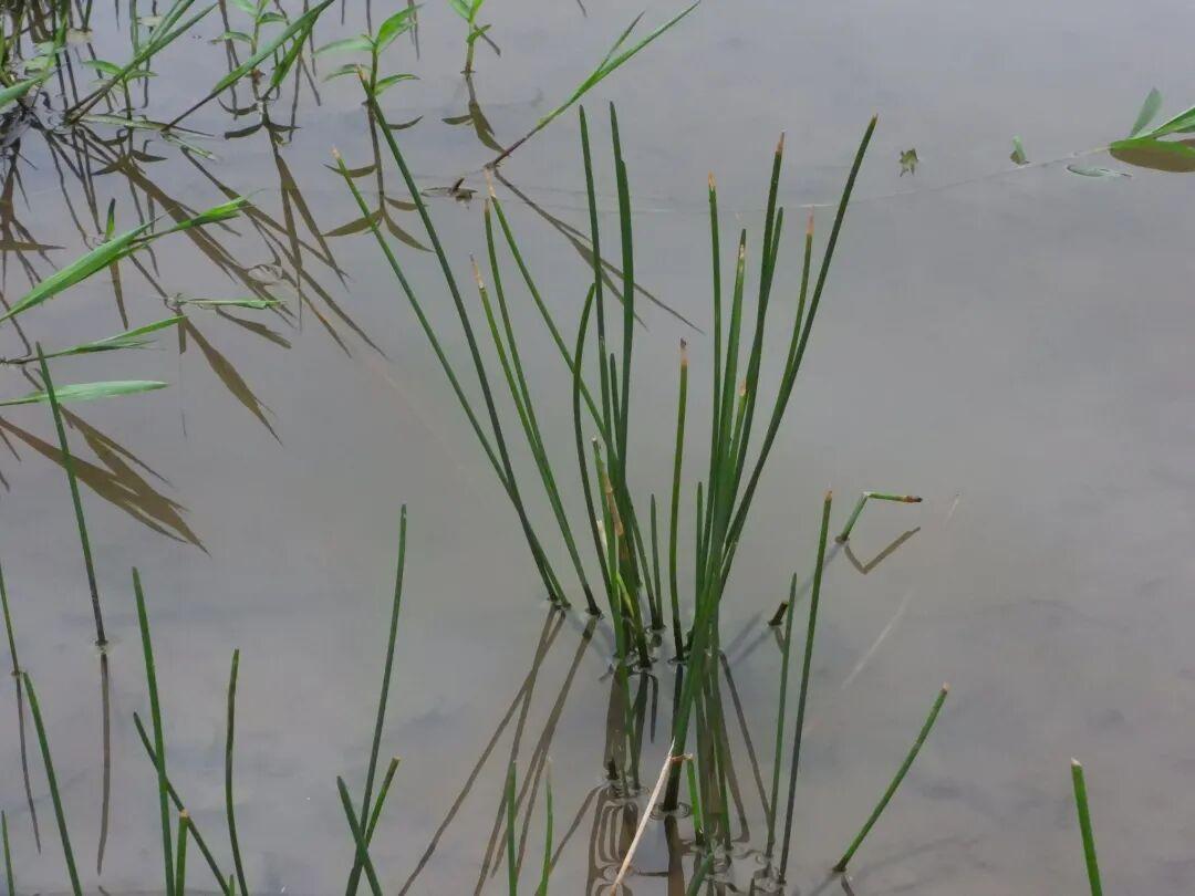 比如它給我畫出了長出水面的荸薺(Eleocharis dulcis)。我們喫的部位是根狀莖,應該長在泥裏。作爲莎草科的植物,荸薺沒有葉片,更沒有這種一看就是“葉子”的葉片。