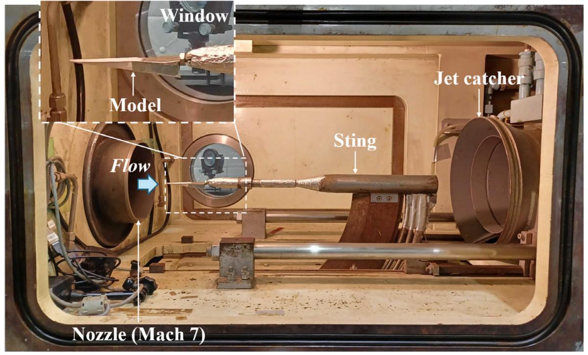 高超聲速高焓風洞測試段內的實驗裝置示意圖(圖片來源:參考文獻[1])