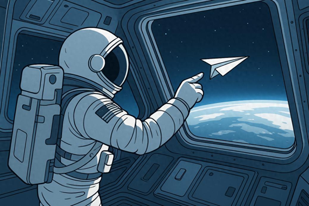 宇航員在空間站扔紙飛機示意圖(圖片來源:作者使用AI生成)
