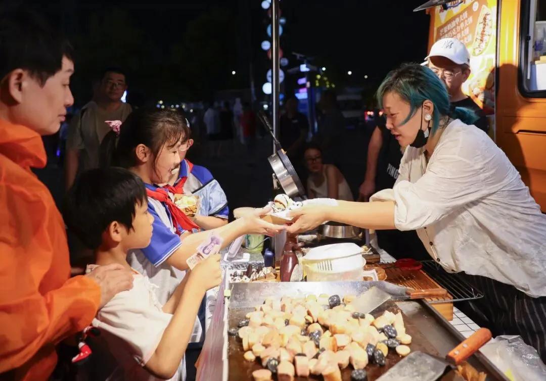 9月14日,小朋友們在選購美食丨新華社記者王翔 攝