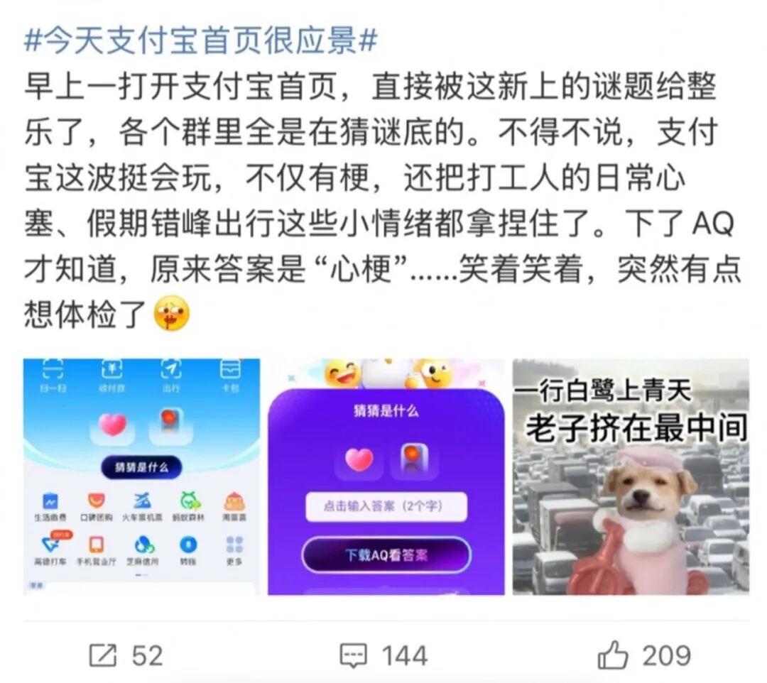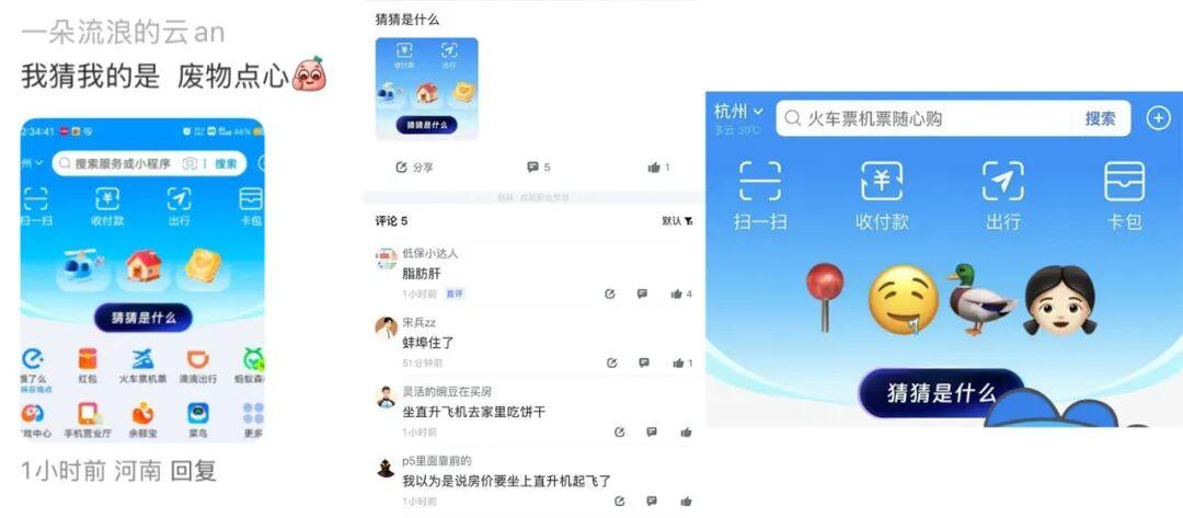 網友們一邊吐槽“支付寶是不是被表情包附體了”,一邊忍不住點進去猜一把,一次又一次地把這事兒“幹到了熱搜”。