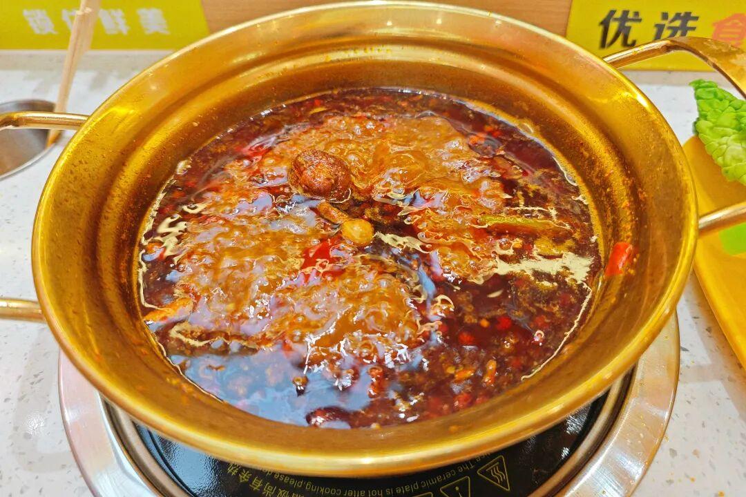 沸騰狀態的孜然鍋底,細碎的料渣隨着熱氣不斷翻湧,麻辣紅油和孜然充分融合,十分重口但又讓人慾罷不能。