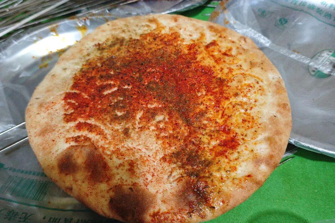 趁着烤肉的餘火點上一個加工饢,饢餅在高溫下外表乾脆內裏喧軟,撒上厚厚一層食鹽、孜然、辣椒,夾上三到五串烤肉用力一捋,連肉帶饢大口下肚,濃郁的孜然香氣直擊味蕾。
