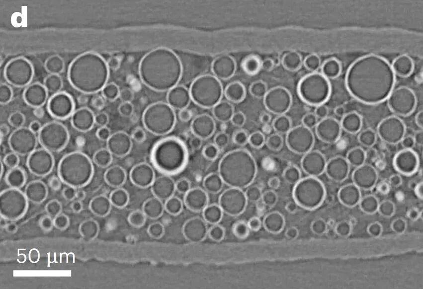 這種生物製造過程的精妙之處在於,細菌會本能地向氧氣豐富的區域移動,穿過密堆積的玻璃微珠之間的空隙,留下分泌的纖維素納米纖維,形成連續的三維網絡。這就像是大自然的建築師在微觀尺度上精心設計的“三明治”結構,每一層都有着獨特的功能,整體卻渾然一體。