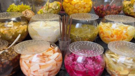 傳統“酸嘢”製作少不了發酵的過程(現在也有部分商家延續了發酵的做法),和醃酸菜類似,都能產生益生菌。