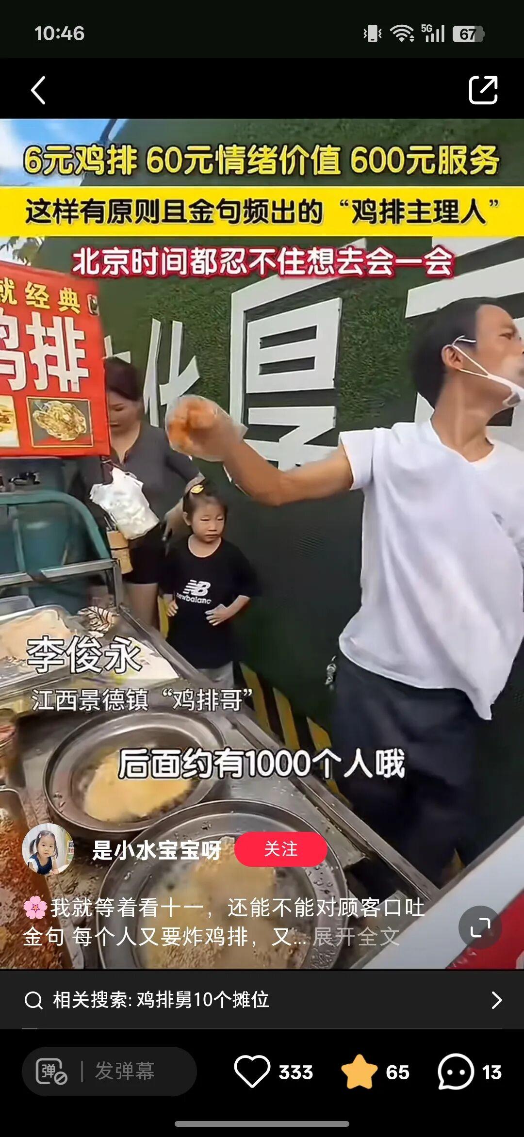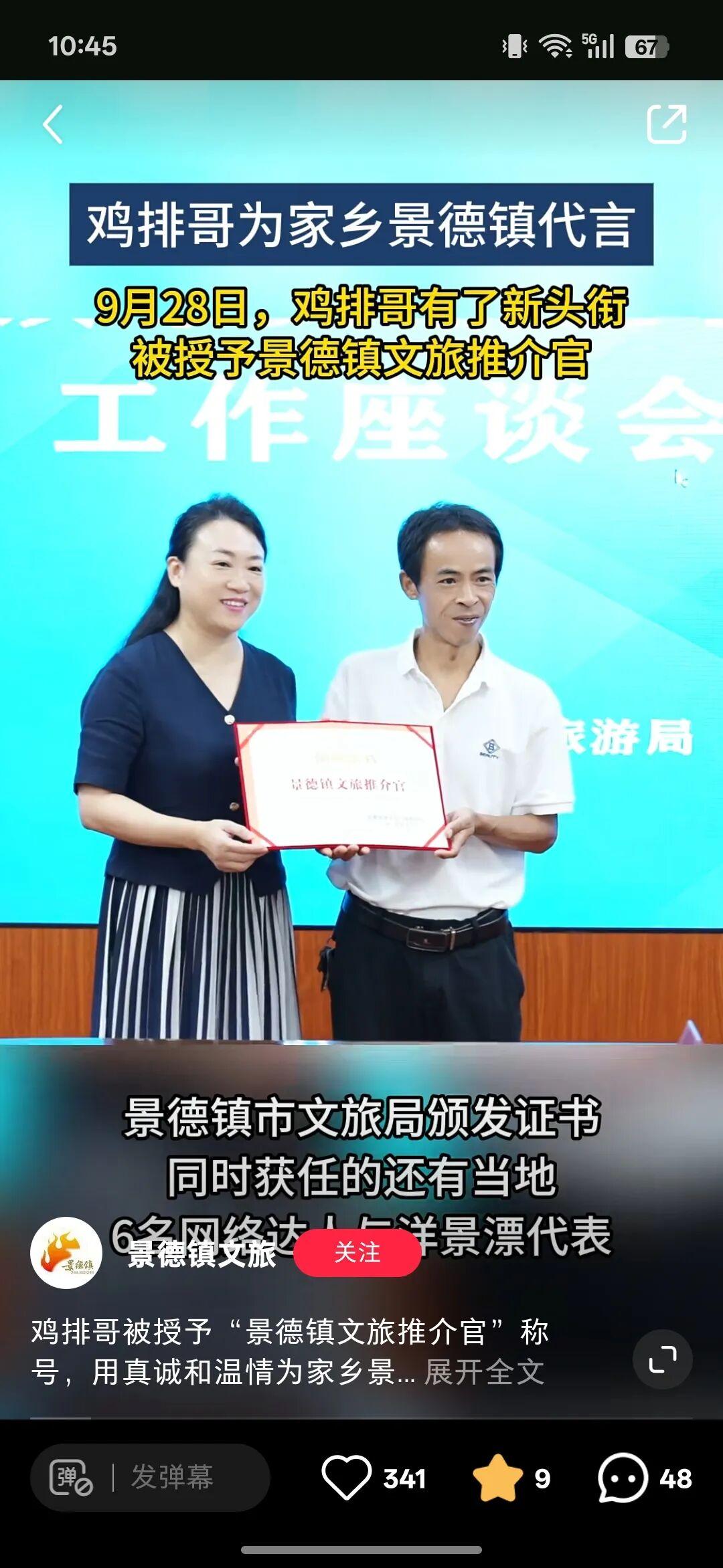 9月28日景德鎮市文化廣電旅遊局授予他“景德鎮文旅推介官”稱號,甚至還爲他配備2-4人的工作專班城管,維持國慶客流秩序……這下雞排哥算是火出圈啦!