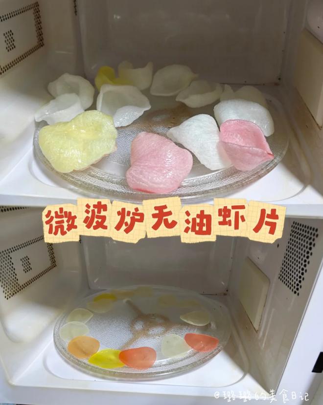 以前去東南亞餐廳總饞人家的蝦片,現在用微波爐就能輕鬆復刻,將蝦片直接放在轉盤上,高火 40-50 秒就能叮出一小盆,還不用油炸!
