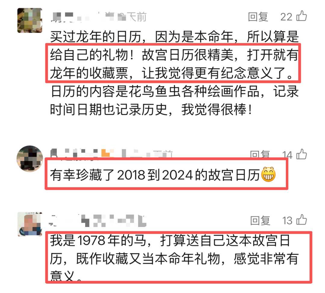 重版之後,《故宮日曆》迅速成爲了故宮家庭的頭部“網紅”,一年比一年火,每年發售都會引發討論、排隊購買。