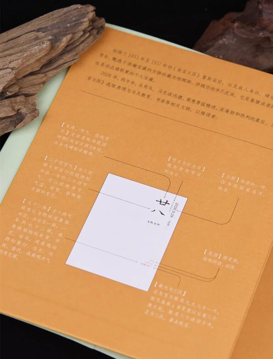 每一頁日曆不僅有簡單的日期,還貼心設計有節氣、節日、文物講解等介紹,讓你體驗到每一天的時光都是珍貴有價值的!