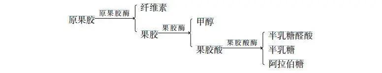 果膠是存在於所有高等植物細胞壁的一種多糖,與植物組織中的纖維素、半纖維素、木質素和蛋白質等相互交聯,使細胞組織結構堅強,表現出比較硬的形態。但在果實成熟過程中,果膠會在果膠酶的作用下降解,果實就會變軟。