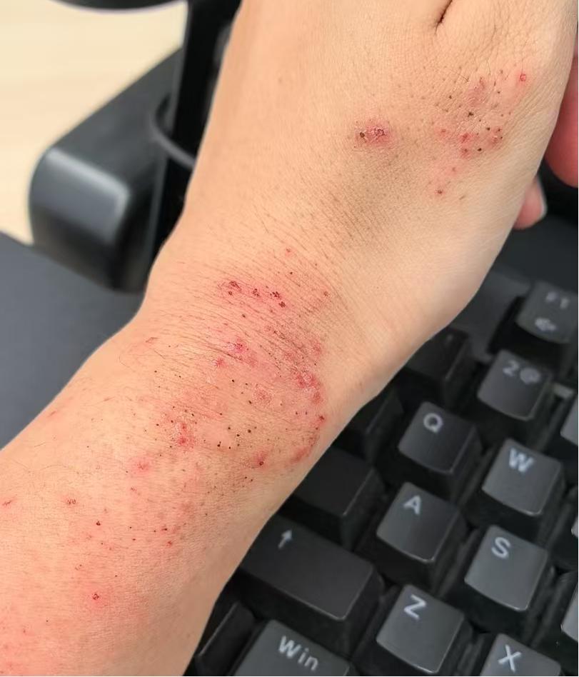 現在我兩隻手都不夠用了,撓完這裏撓那裏,撓得睡不着,好不容易睡着了又被癢醒。上班時要忙工作還顧不上撓,情緒已經瀕臨崩潰,我只好去了醫院。