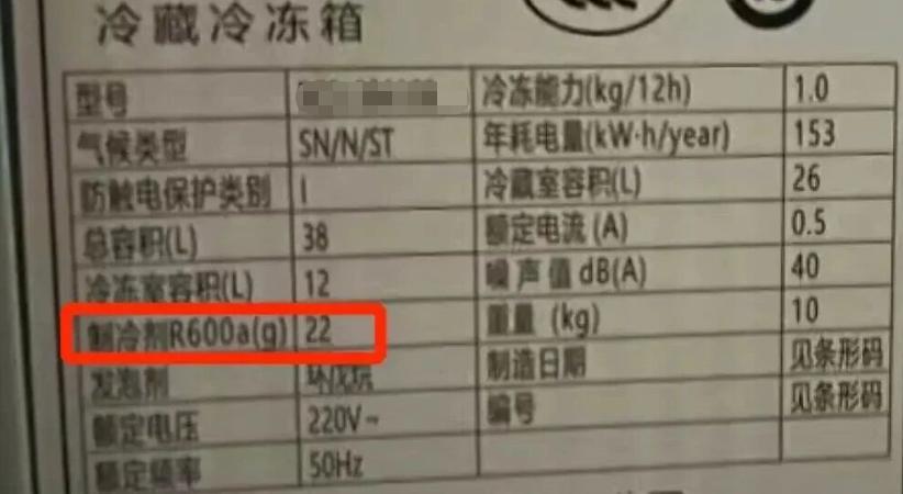 現在很多冰箱裏使用的製冷劑是易燃物質,比如常見的有 R600a。你可以看一下自己家的冰箱背面,上面都會標註製冷劑的類型。