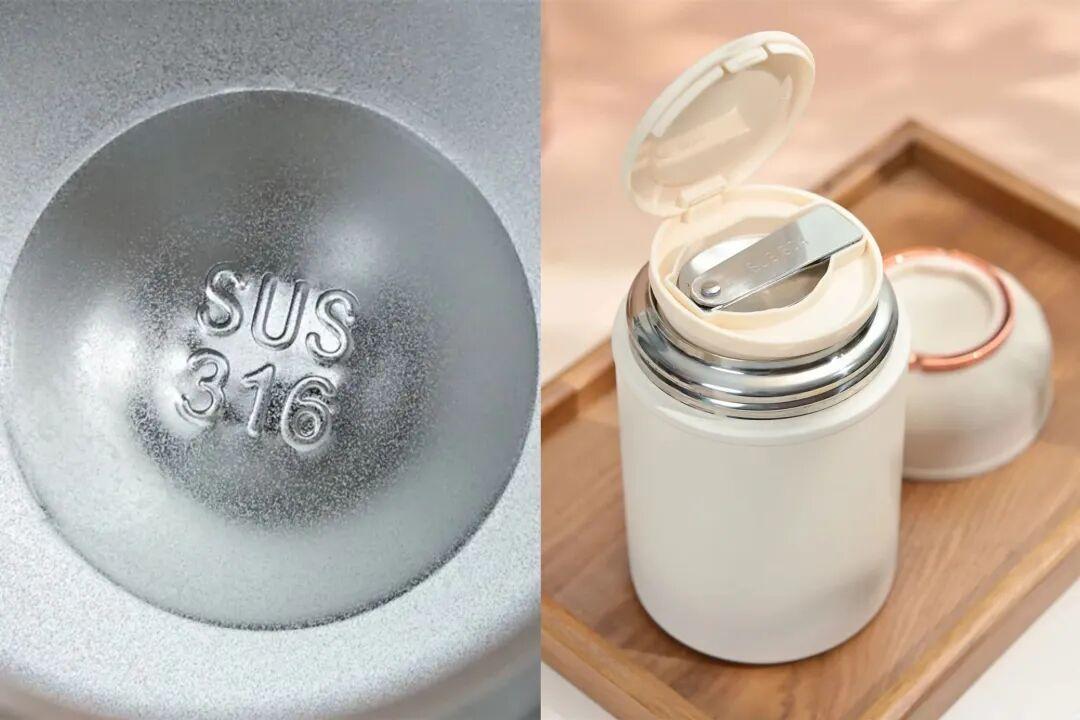 再看看這燜燒杯,內膽是食品·級不鏽鋼304,內底是食品·級不鏽鋼316材質,而且考慮到每次“找勺子”的麻煩,燜燒杯裏附帶一個304不鏽鋼的摺疊勺!